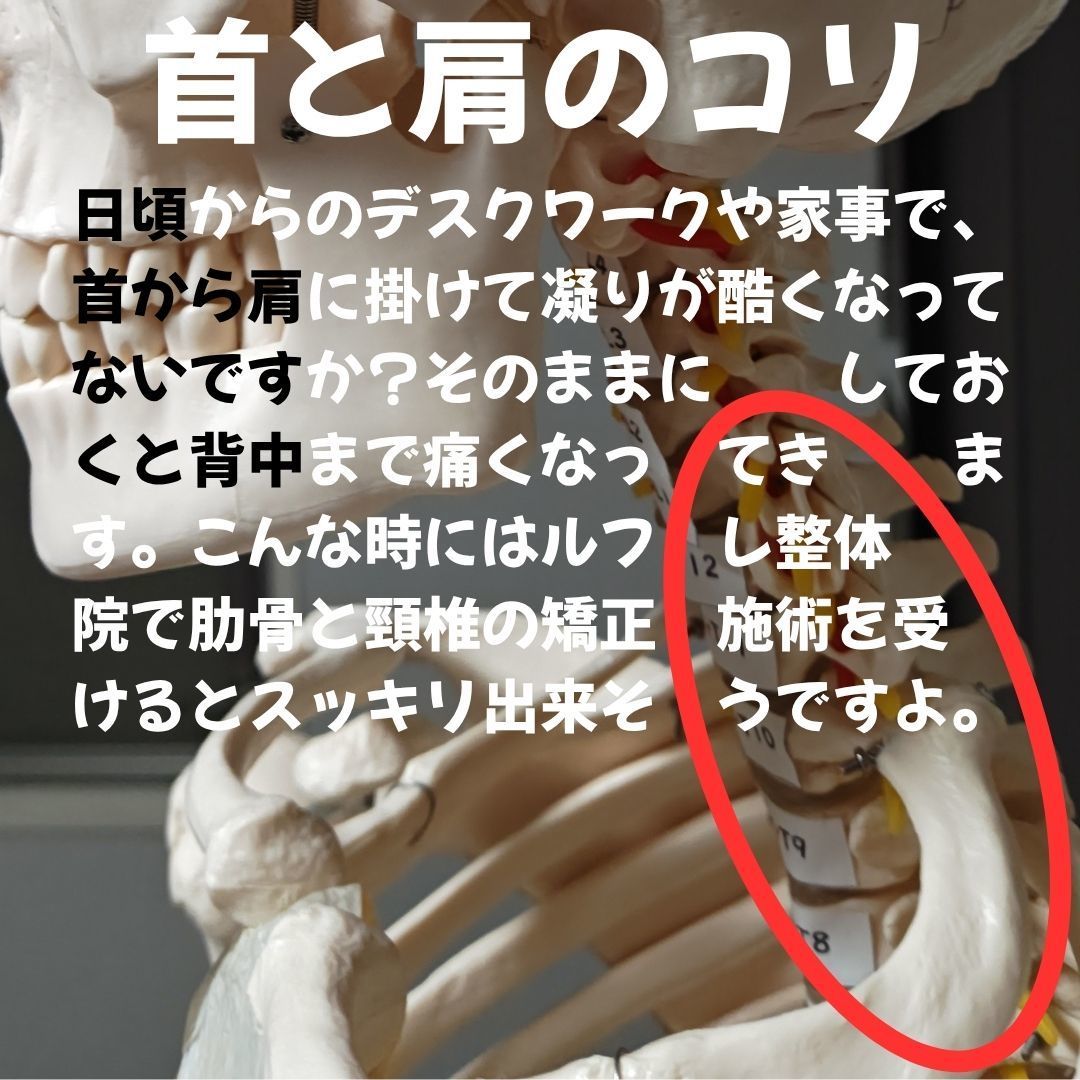 そんな辛い症状には頸椎と肋骨の骨格矯正が有効です。