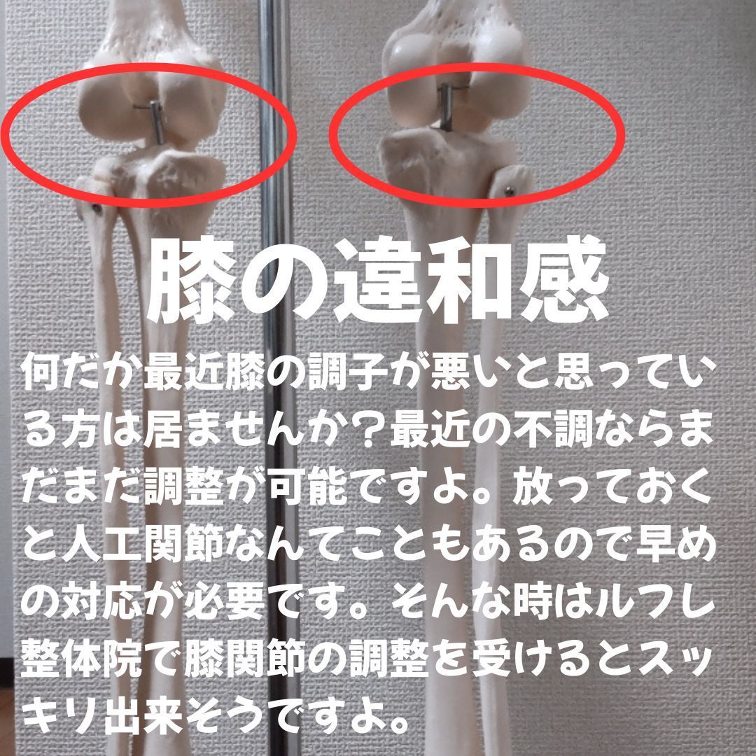 膝の違和感は、関節の歪みであることが多いです。